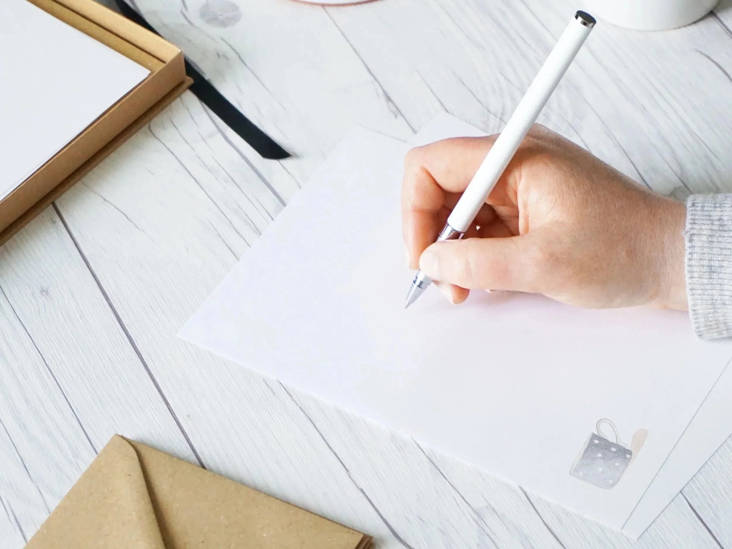 Of course, beautiful paper or cards can make the experience feel more considered, but they aren’t the starting point. The act of writing is.